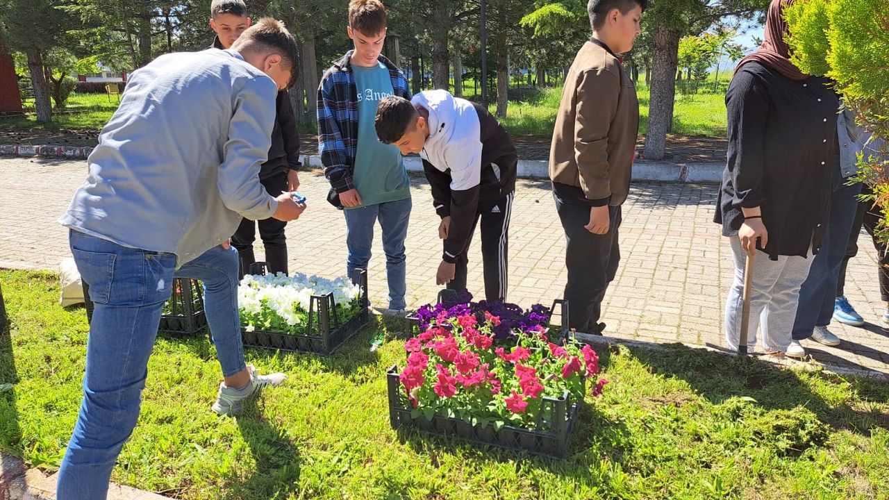 Afyonkarahisar Sandıklı Hisar Mesleki Teknik ve Anadolu Lisesi öğrencileri, öğretmenleri ile birlikte Sandıklı Meslek Yüksek Okulu Yunus Emre Kampüsün’de Çevre Haftası çerçevesinde çiçek dikti.