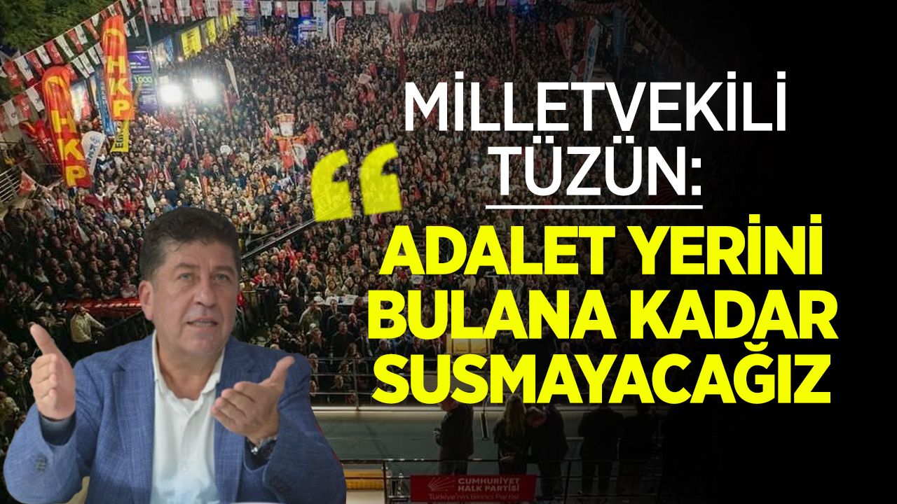 Tüzün, “Bu ülkenin vicdanı susturulamaz, bu halkın sesi bastırılamaz. Haksız ve hukuksuz yere tutuklanan bütün yol arkadaşlarımız serbest bırakılana kadar mücadelemizi sürdüreceğiz. Bu sadece bir siyasi hesaplaşma değil, aynı zamanda bir vicdan testidir. Bu testten demokrasi geçecek, baskıcı zihniyet kaybedecek.” dedi