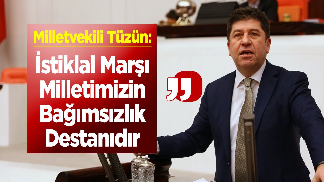 Tüzün açıklamasında, 12 Mart 1921’de Türkiye Büyük Millet Meclisi’nde kabul edilen İstiklal Marşı’nın milletimizin bağımsızlık mücadelesinin, özgürlük iradesinin ve vatan sevgisinin en güçlü sembollerinden biri olduğunu vurguladı. Büyük şair Mehmet Akif Ersoy’u saygı, rahmet ve minnetle anan Tüzün, marşın Kurtuluş Savaşı’ndaki kararlılığı ve milletin sarsılmaz inancını ölümsüzleştirdiğini ifade etti.