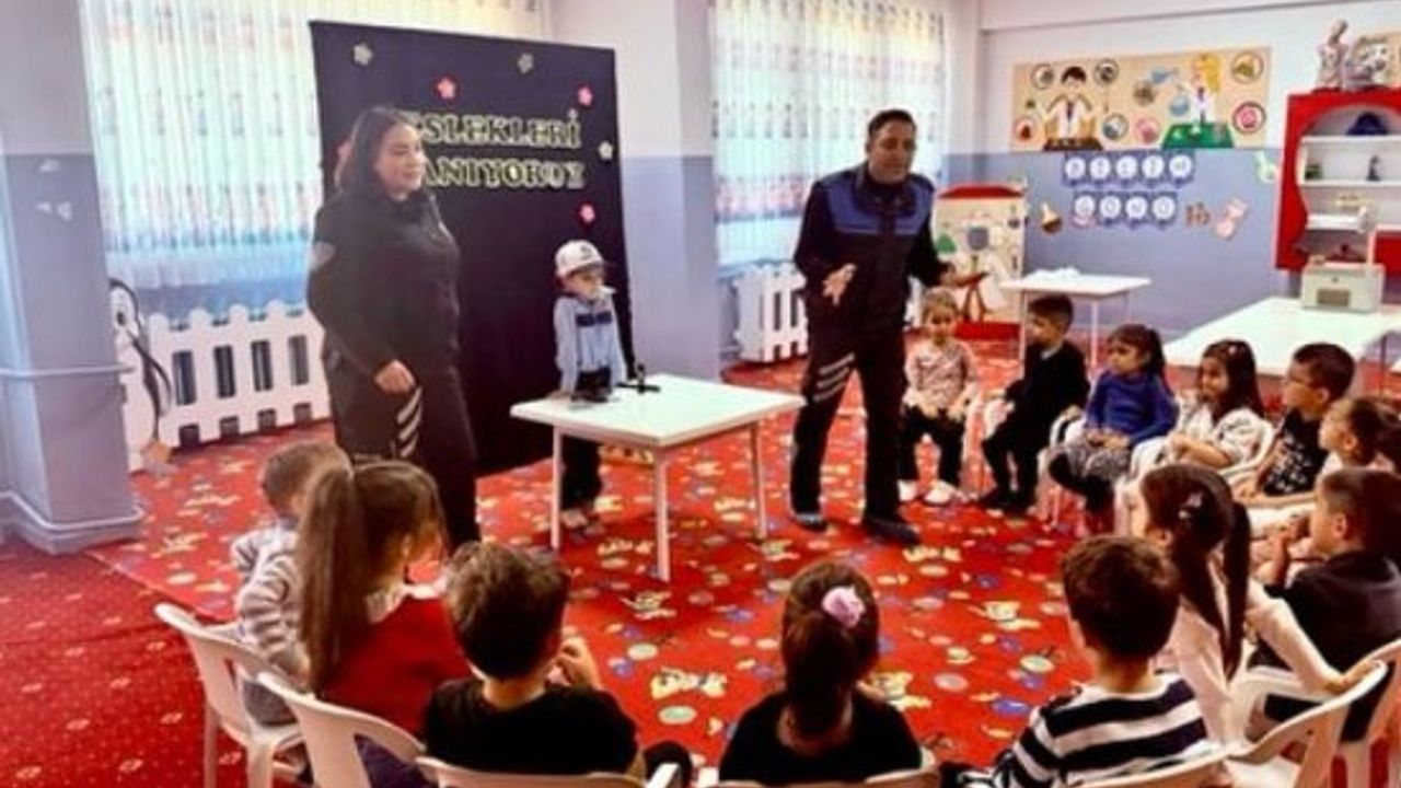 Miniklerin yoğun ilgi gösterdiği etkinlikte, çocukların güvenlik konusundaki soruları yanıtlandı; polislerle kurdukları sıcak iletişim ise dikkat çekti.