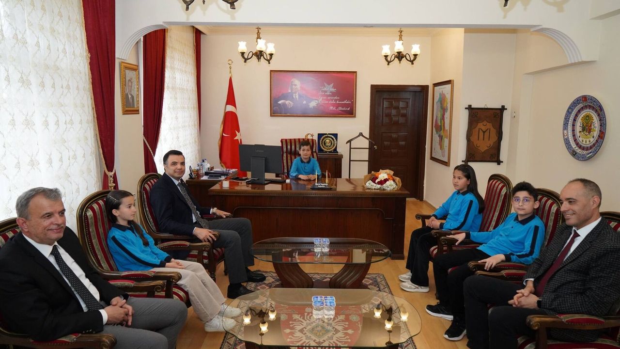 Ziyarete katılan öğrenciler Buğlem Çetinkaya, Ömer Göktaş, Melih Eskitaş ve Zeynep Kasap, Kaymakamlık makamında duygu ve düşüncelerini paylaşarak taleplerini dile getirdi. İlçe Kaymakamı Murat Yayabaşı, öğrencilerle yakından ilgilenerek 23 Nisan’ın anlam ve önemine ilişkin sohbet etti. Yayabaşı, çocukların bayramını kutlayarak çeşitli hediyeler takdim etti.