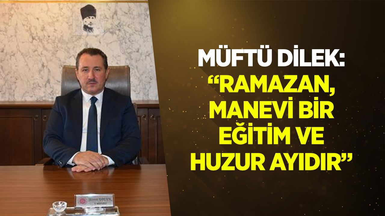 Müftü Dilek, mesajında Ramazan ayının iman, salih amel ve güzel ahlakla süslenmiş bir manevi eğitim dönemi olduğunu belirterek, “Sahuru, orucu, iftarı, teravihi ve mukabelesiyle hayatımıza sayısız güzellik katan Ramazan ayı; kalplerimizde, evlerimizde ve tüm yeryüzünde eşsiz bir manevi atmosfer oluşturmaktadır. Bu ayda ifa edilen zekât, fitre, ikram, infak ve sadakalarla Müslümanlar arasında paylaşma ve dayanışma bilinci güçlenmekte, kardeşlik ve dostluk duyguları daha da pekişmektedir” ifadelerini kullandı.