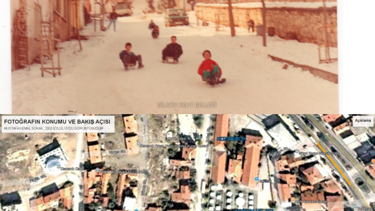 Bilecik Kent Belleği Arşivi’nden çıkan bu kare, 1980’li yılların sokak yaşamına dair neşeli ve sıcak bir anıyı gözler önüne seriyor. Fotoğrafta, Mustafa Kemal Sokak’ta çocuklar kızaklarıyla kayarak kışın tadını çıkarıyor. Karla kaplı sokak, dönemin mahalle yaşamını ve çocukların saf eğlencesini adeta zaman kapsülüne dönüştürüyor.
