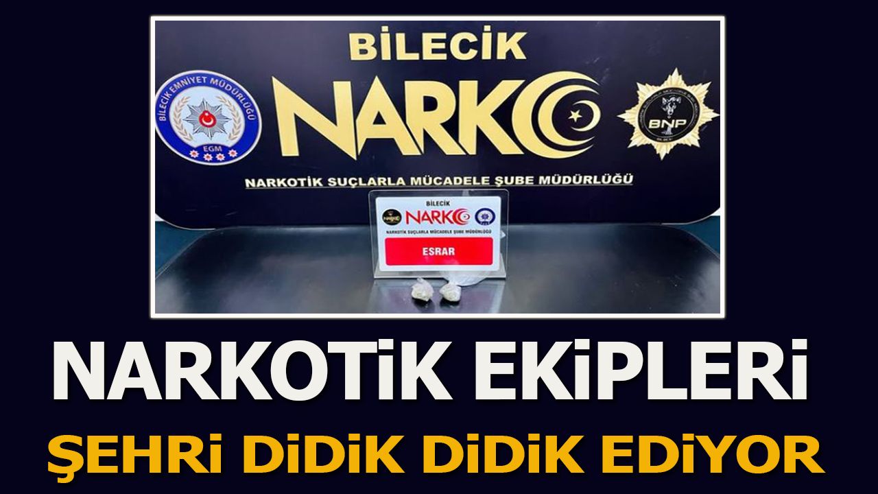 Bilecik Emniyet Müdürlüğü Narkotik Suçlarla Mücadele Şube Müdürlüğü ekipleri, uyuşturucu ile mücadelede kararlı ve etkin çalışmalarını sürdürüyor. Şehirde adeta kuş uçurtmayan narkotik timleri, bir başarılı operasyona daha imza attı.