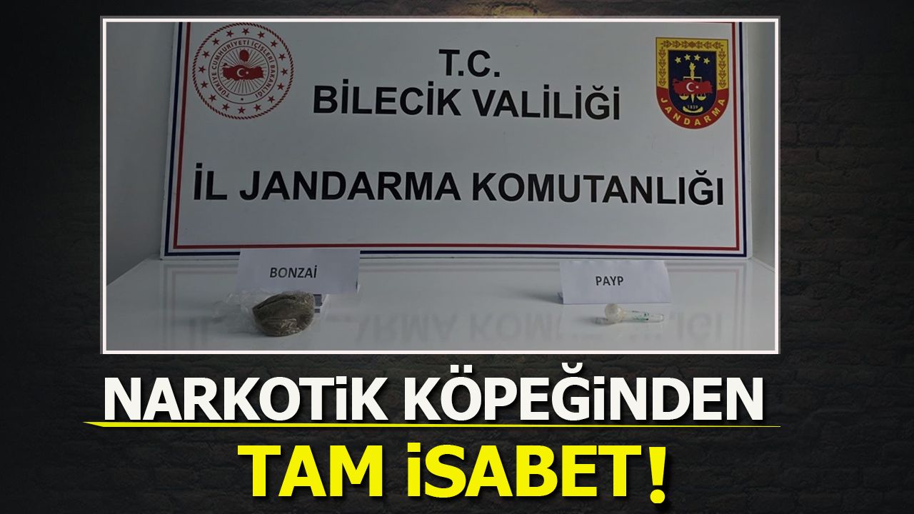 Edinilen bilgilere göre, denetim sırasında 11 ABC 665 plakalı araçta bulunan Mecid Taner S., Anıl G. ve İlker Yasin N. isimli şahısların tedirgin ve aceleci tavırlar sergilemesi üzerine araçta ayrıntılı kontrol yapıldı. Ön yolcu koltuğu altında şüpheli bir poşet tespit edilirken, Uyuşturucu Arama Köpeği’nin de aynı bölgeye tepki vermesi üzerine arama gerçekleştirildi. Ekipler tarafından yapılan aramada 36,66 gram bonzai ve 1 adet payp ele geçirildi. Olayla ilgili gözaltına alınan şüpheliler, jandarmadaki işlemlerinin ardından serbest bırakıldı.