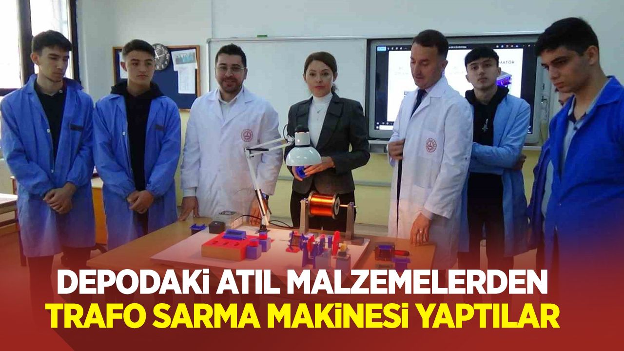 Bilecik’in Osmaneli ilçesindeki Nilüfer Hatun Mesleki ve Teknik Anadolu Lisesi Elektrik-Elektronik Teknolojileri Alanı öğretmen ve öğrencileri, kendi imkânları ile geri dönüşüm malzemeleri ile trafo sarma makinesi geliştirdi.