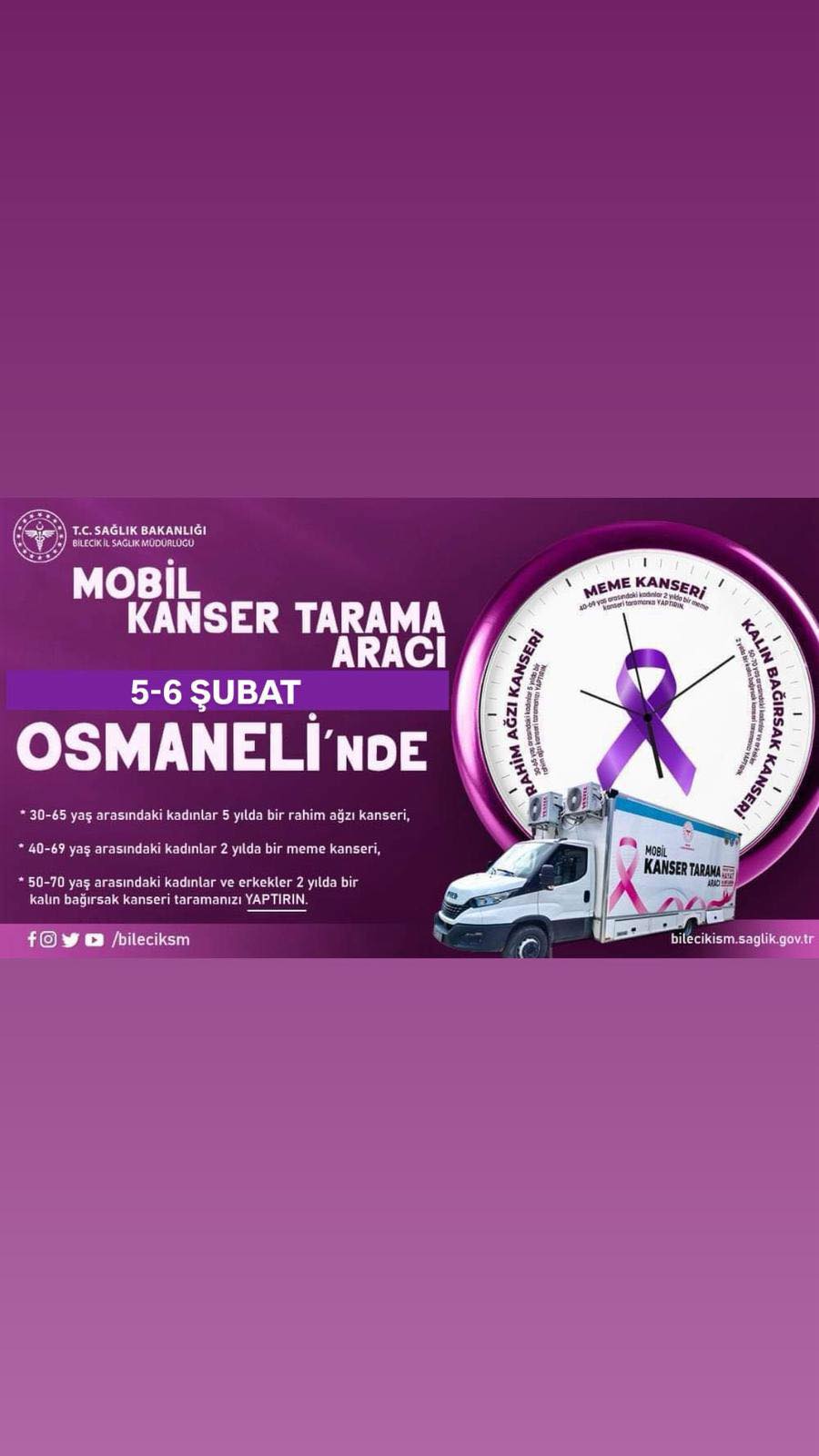 Osmaneli Kaymakamlığı, kadın sağlığının korunması ve erken teşhisin önemi vurgusuyla vatandaşları taramaya katılmaya davet etti.