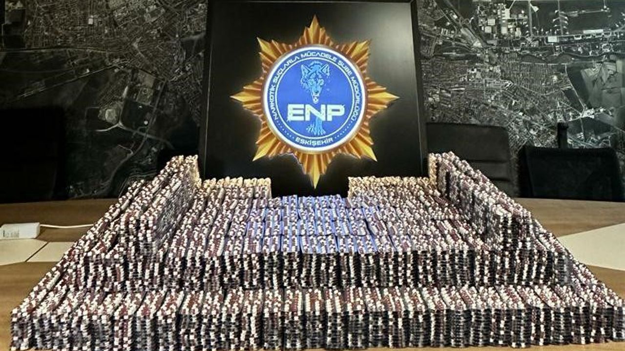 Eskişehir Emniyet Müdürlüğü ekiplerince bir araçta yapılan aramada 63 bin 518 adet uyuşturucu hap ele geçirildi.