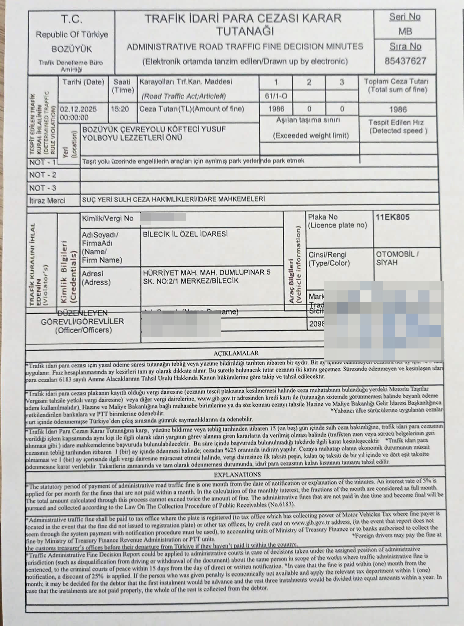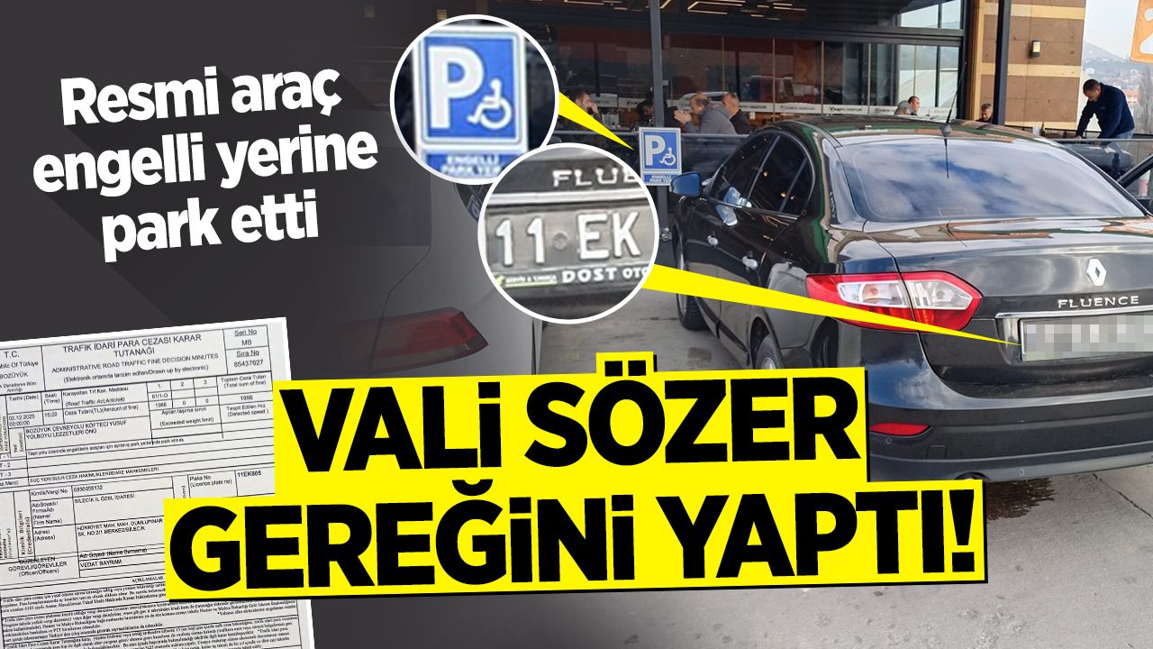 Öte yandan Vali Sözer'in Bilecik İl Özel İdaresi'ne ait resmi aracın yaptığı hatayı cezalandrıması takdir yopladı. Sürücüye de 1986 lira ceza yazıldığı belirtildi.