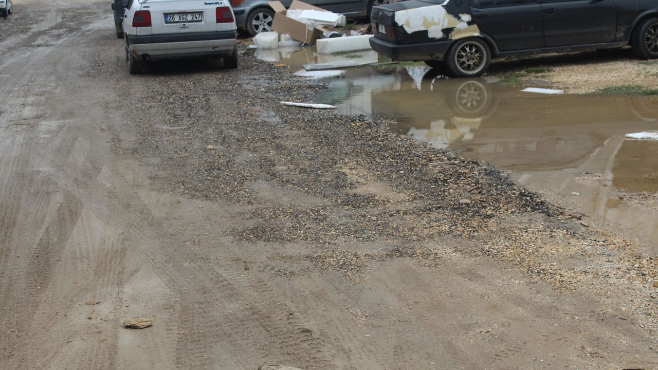 Eskişehir’de bir sokakta yağıştan dolayı çamur ve su birikintilerinin oluşması göze çarptı.