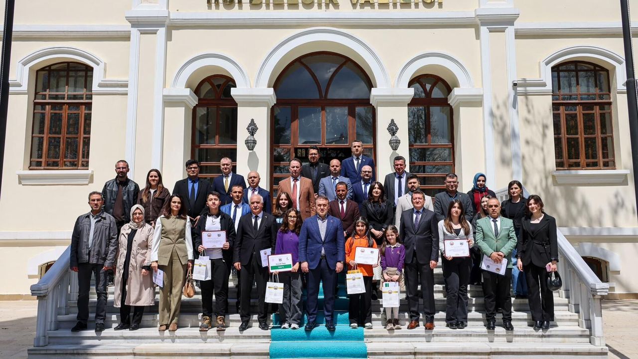 Bilecik Valiliğinde gerçekleştirilen programda, yarışmada başarılı olan öğrenciler, Vali Faik Oktay Sözer tarafından ödüllendirildi.