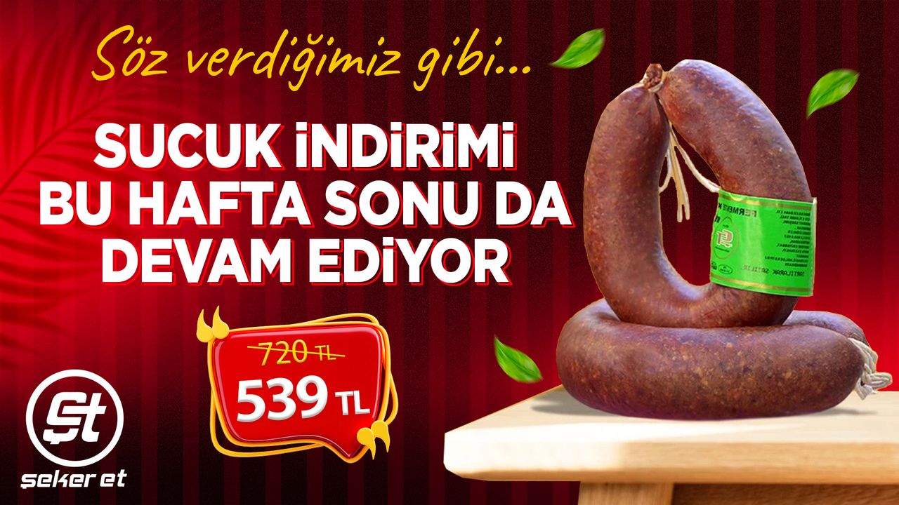 “Et fiyatlarında genel artış olsa da biz vatandaşlarımıza verdiğimiz sözü tutuyoruz. Sucukta indirim kampanyamızı bu hafta sonu da sürdürüyoruz. Biz sadece et üretmiyoruz; güven, sağlık ve mutluluk üretiyoruz. Şeker Et’te indirim bitmez, kalite düşmez, sofralar bereketlenir, halk kazanır. Bu hafta sonu indirimi kaçırmayın. Sucuksuz kahvaltı sofrası kalmasın. 720 değil, 539’a sucuk keyfi Şeker Et’te!”