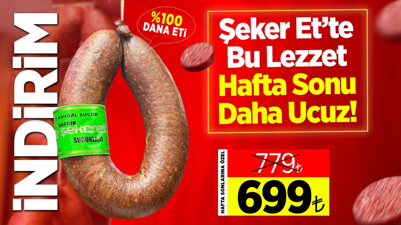 “Et fiyatlarında genel artış olsa da biz vatandaşlarımıza verdiğimiz sözü tutuyoruz. Sucukta indirim kampanyamızı bu hafta sonu da sürdürüyoruz. Biz sadece et üretmiyoruz; güven, sağlık ve mutluluk üretiyoruz. Şeker Et’te indirim bitmez, kalite düşmez, sofralar bereketlenir, halk kazanır. Bu hafta sonu indirimi kaçırmayın. Sucuksuz kahvaltı sofrası kalmasın. 920 değil, 779 değil, 699’a sucuk keyfi Şeker Et’te!”