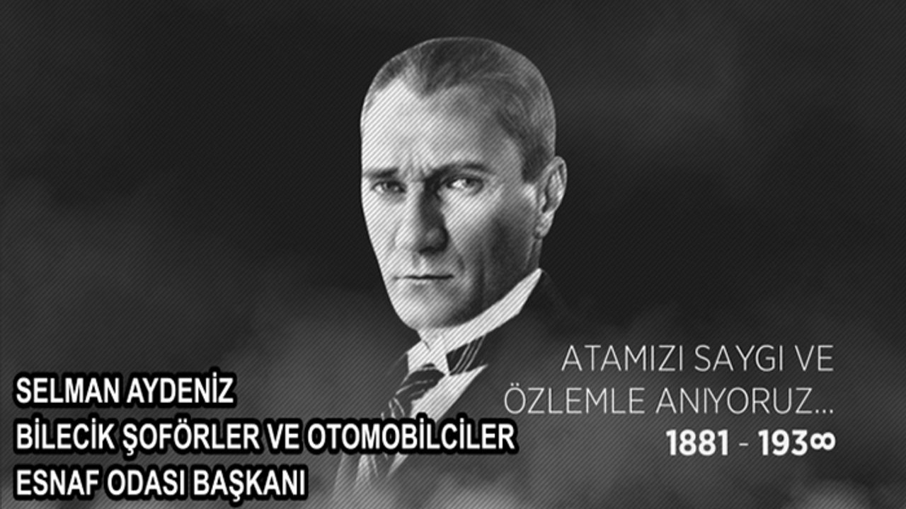Bilecik Şoförler ve Ototmobilciler Oda Başkanı Selman Aydeniz, 10 Kasım Atatürk'ü Anma günü dolayısıyla bir mesaj yayınladı.