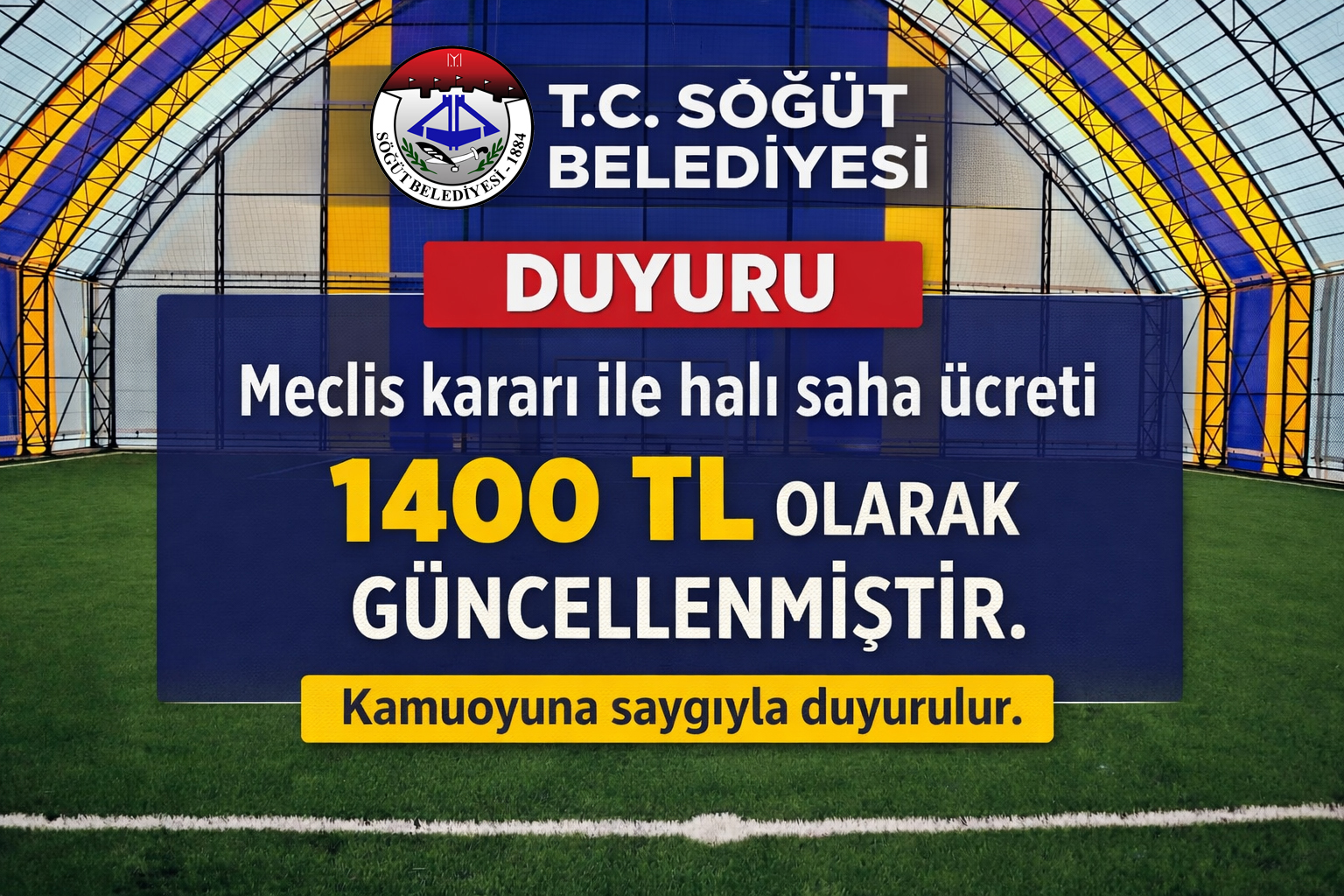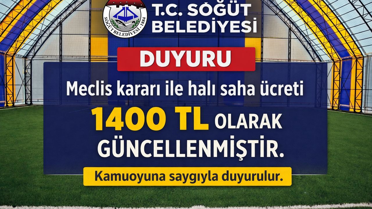 Belediyeden yapılan duyuruda, '' Belediye Meclisi’nin almış olduğu karar doğrultusunda, halı saha ücreti 1.400 TL olarak yeniden belirlenmiş olup, söz konusu ücret Ocak ayı itibarıyla uygulamaya konulacaktır.