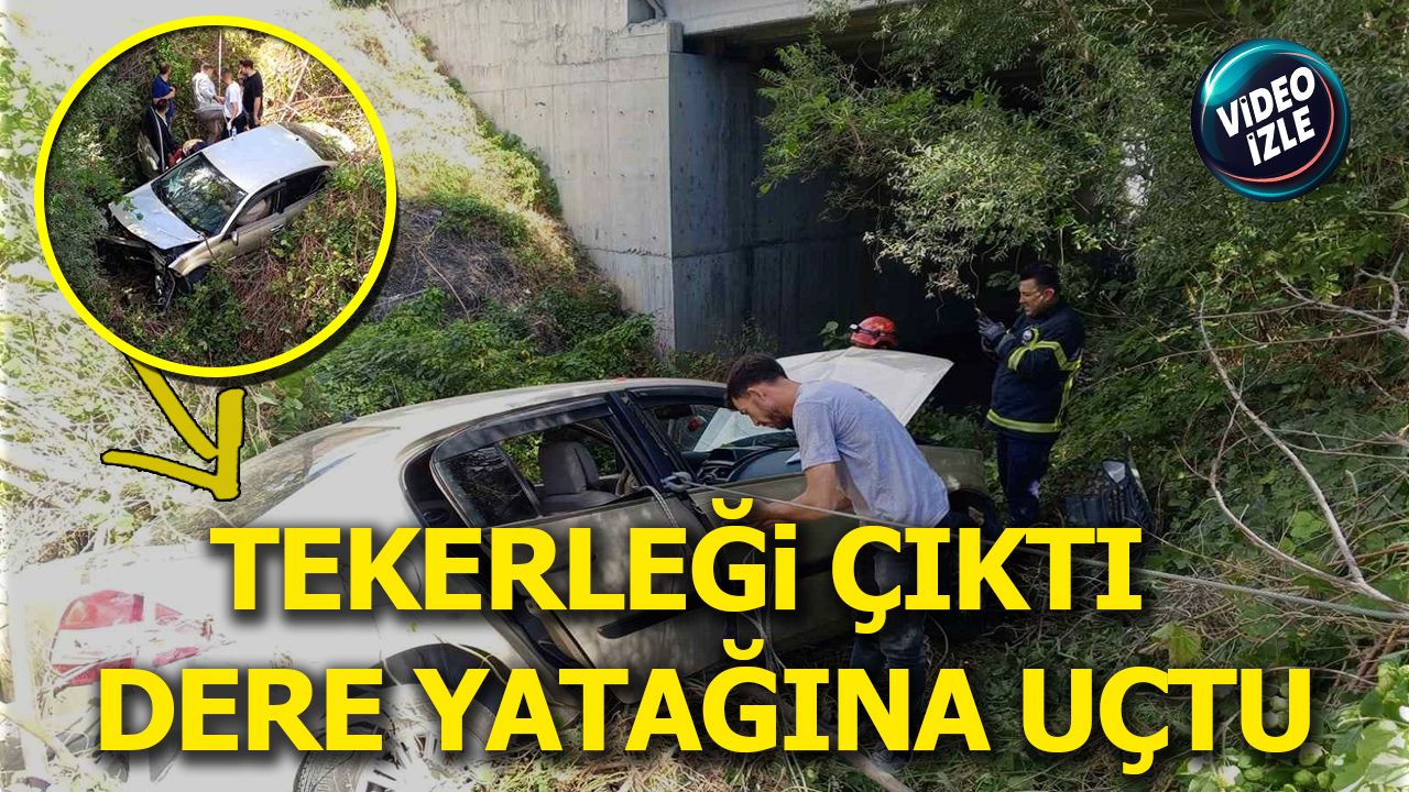 Bilecik’te seyir halindeyken bir tekerleğinin fırlaması sonucu kontrolden çıkan otomobil dere yatağına uçarken 1’i ağır 2 kişi yaralandı.