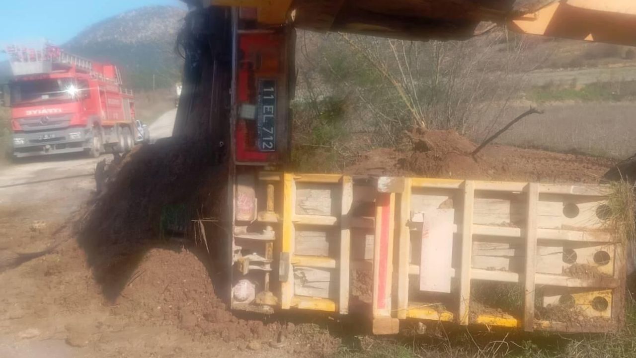 Bilecik’in Gölpazarı ilçesi Demirhanlar köyü mevkiinde 11 EL 712 plakalı tırın dorsesinde kazaen yangın çıktı.