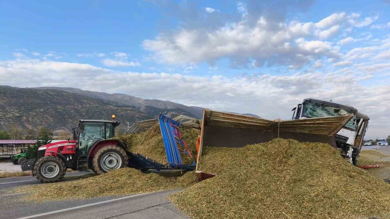 Afyonkarahisar’da kontrolden çıkan tırın önünde seyreden traktöre çarpması sonucu meydana gelen trafik kazasında 2 kişi yaralanırken, olayda traktörün römorkunda taşıdığı yaklaşık 2 ton hayvan yemi ise çevreye saçıldı.