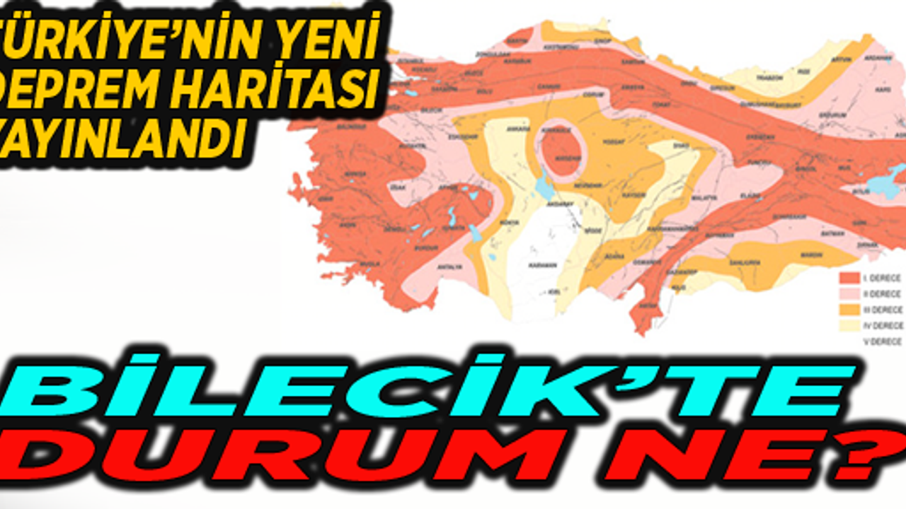 Afet ve Acil Durum Yönetimi Başkanlığı(AFAD) tarafından 22 yıl sonra yenilenen deprem tehlike haritasına göre Türkiye'nin riskli bölgeleri değişiklik gösterdi. Yeni haritada Bilecik’in de içinde bulunduğu (Adana, Adıyaman, Ağrı, Antalya, Ardahan, Artvin Balıkesir, Bartın, Batman, Bitlis, Bursa, Çanakkale, Çorum, Çankırı, Diyarbakır, Eskişehir, Gaziantep, Gümüşhane, Hakkâri, İçel, Iğdır, Isparta, Kahramanmaraş, Karabük, Kars, Kastamonu, Kayseri, Kırıkkale, Kırşehir, Malatya, Mardin, Muğla, Muş, Nevşehir, Ordu, Osmaniye, Samsun, Siirt, Sivas, Şanlıurfa, Tokat, Uşak, Van, Yozgat, Zonguldak) 46 ilde deprem tehlikesi azalırken; Aksaray, Erzurum, Karaman, Rize, Tekirdağ, Trabzon gibi illerin ise risk durumu yükseldi.