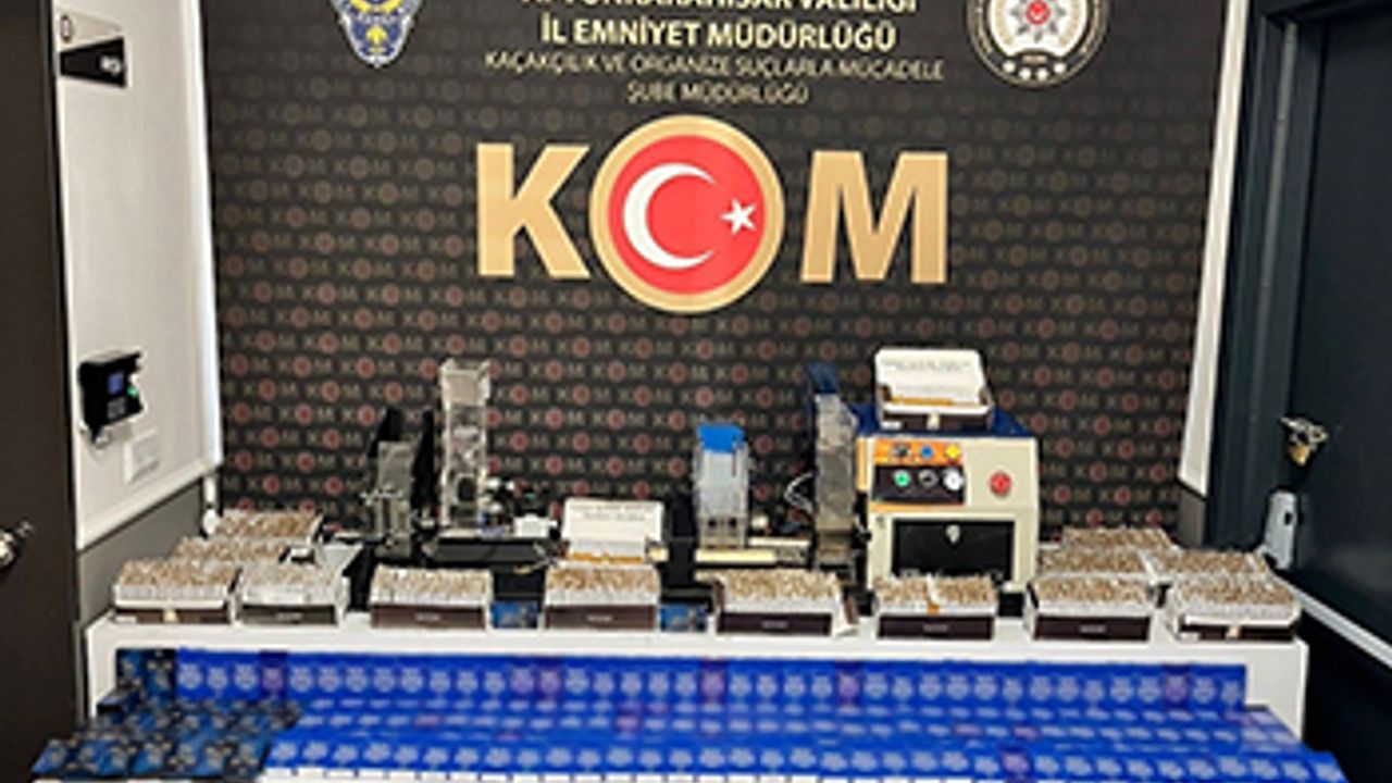 Afyonkarahisar’da polis ekiplerince 2 adet sigara doldurma makinesi, 11 bin 500 adet doldurulmuş makaron ve 4 kilogram nargile tütünü ele geçirilirken, 2 şüpheliye işlem yapıldı.