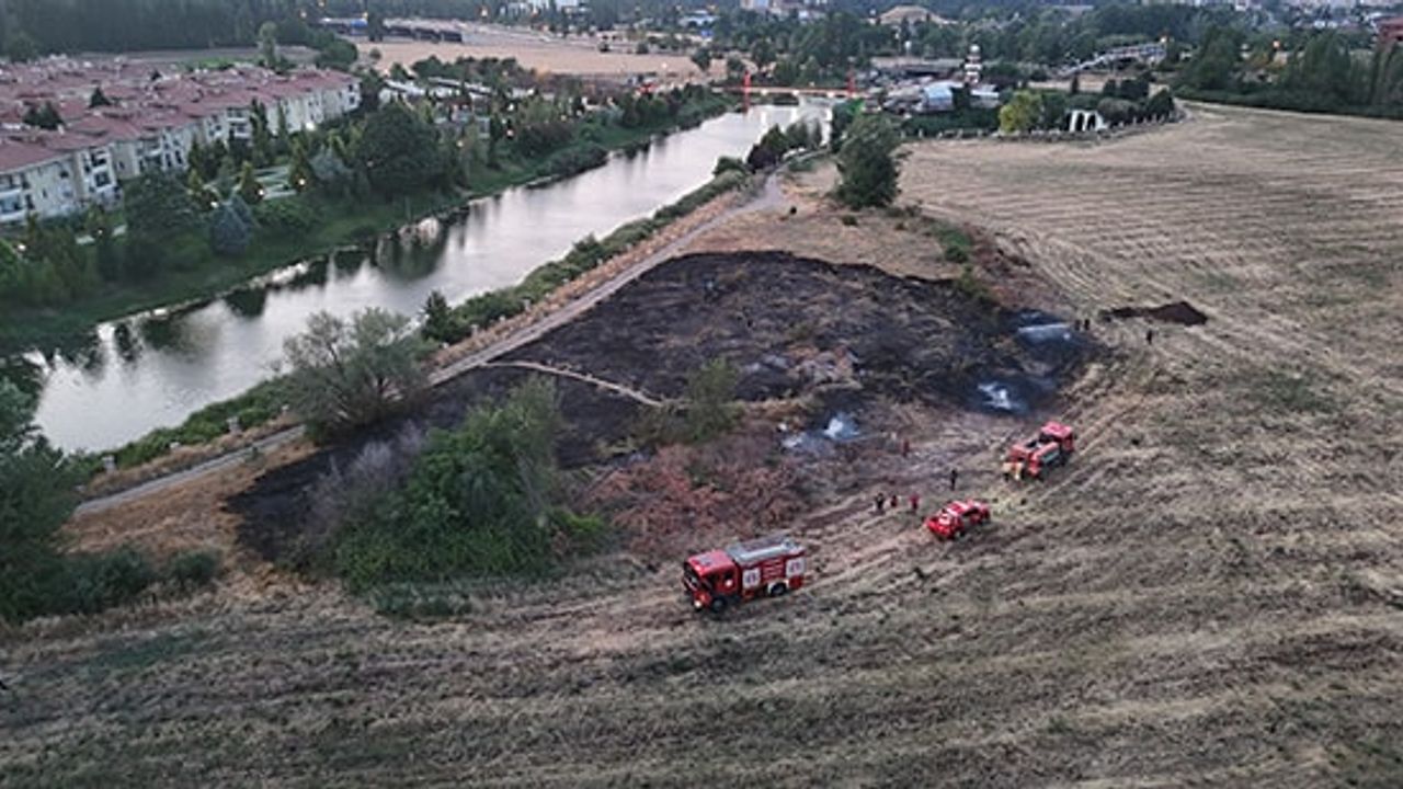 Yangın, Odunpazarı ilçesi Büyükdere Mahallesi Regülatör Piknik Alanı yakınlarında meydana geldi. Bu noktada bulunan bir tarlada iddiaya göre 1’i kadın 3 şahıs, henüz bilinmeyen bir nedenle yangına sebebiyet verdikten sonra olay yerinden kaçtı. Kısa sürede büyüyen alevleri görenler itfaiye ve polis ekiplerine ihbarda bulundu. İtfaiye ekiplerinin yanı sıra Eskişehir Orman Bölge Müdürlüğü’ne ait ekipler arazözlerle alevlere müdahale etti. Uzun uğraşlar sonucunda kontrol altına alan tarım arazisindeki soğutma çalışması havadan görüntülendi. Ekiplerce yapılan incelemelerde tarım arazisinde bin metrekare alanın yandığı tahmin edildi. Polis ekipleri iddiaları değerlendirirken, yangının çıkış nedeni ile ilgili inceleme başlattı.