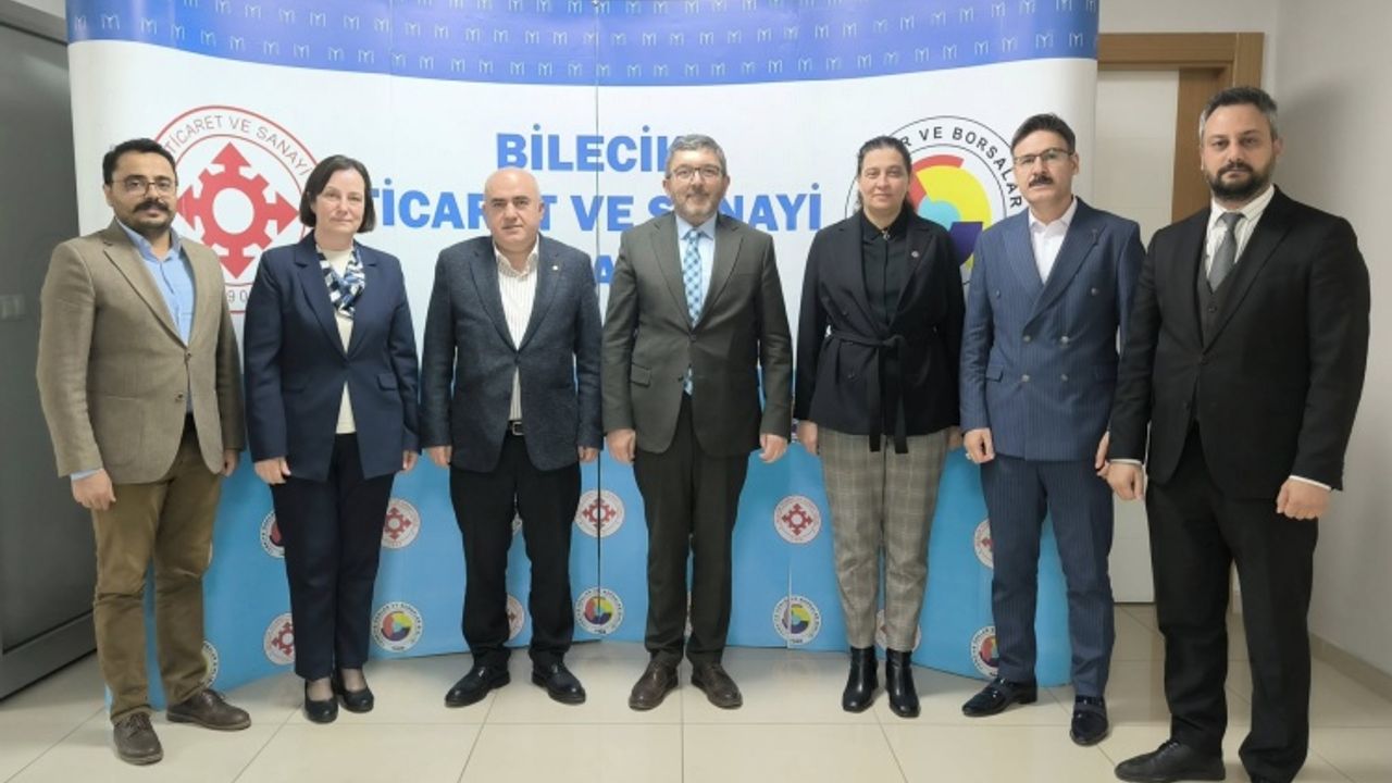 Bilecik Şeyh Edebali Üniversitesi Rektörü Prof. Dr. Zafer Asım Kaplancıklı, Rektör Yardımcısı Prof. Dr. Nazile Ural, Tıp Fakültesi Dekanı Prof. Dr. Neşe Kaklıkkaya ile Dekan Yardımcıları Prof. Dr. Cüneyt Çağlayan ve Prof. Dr. Erhan Şahin, Bilecik Ticaret ve Sanayi Odası Yönetim Kurulu Başkanı Mehmet Ergün’ü makamında ziyaret etti.