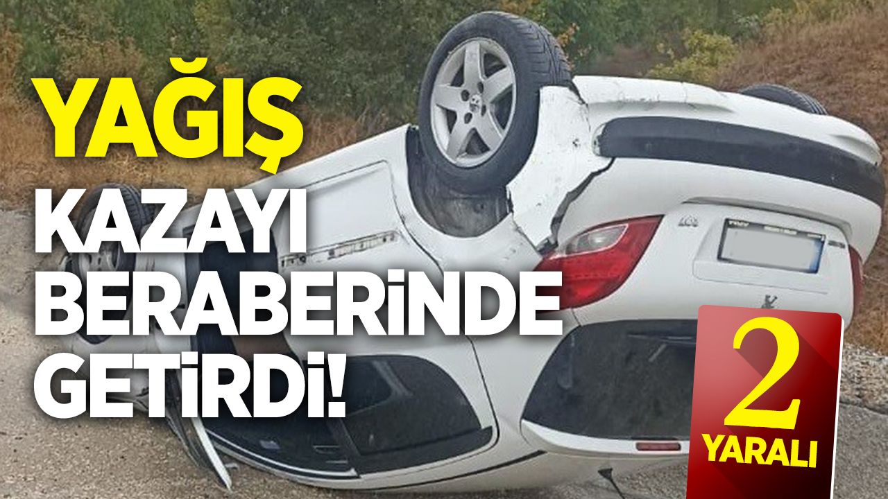 Bilecik’te seyir halinde yağışın etkisiyle kontrolden çıkan otomobil takla atarken, araçta bulunan 2 kişi yaralandı.