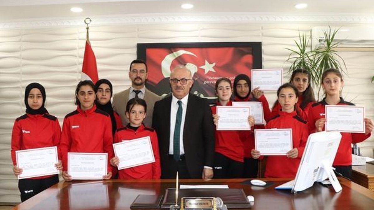 Şampiyonluk başarısını elde eden öğrencileri kutlayan Müdür Demir, teşekkür belgelerini de takdim etti ve Bölge Finallerinde başarılar diledi.