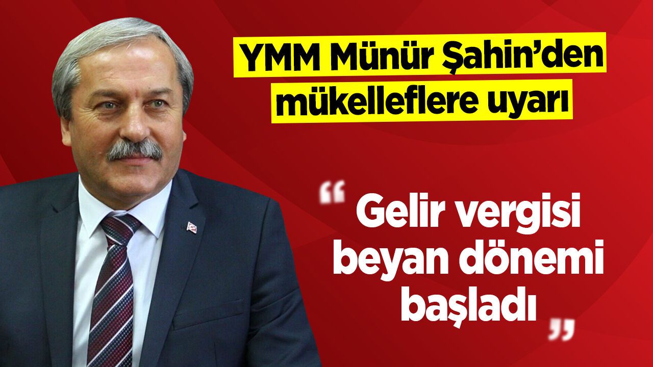 Yeminli Mali Müşavir Münür Şahin, 2025 takvim yılına ait yıllık gelir vergisi beyannamelerinin verilme sürecinin başladığını belirterek mükelleflerin beyannamelerini 1–31 Mart 2026 tarihleri arasında vermeleri gerektiğini bildirdi.